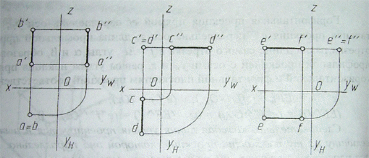 Прямые, перпендикулярные плоскостям проекций, называются проецирующими прямыми.