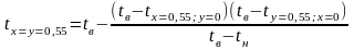 4.3.3.3. Найдём коэффициент избыточной относительной температуры θ по осям X и Y.