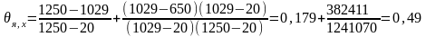 По приложению 4 ист. «Справочник по огнестойкости и пожарной опасности строительных конструкций, пожарной опасности строительных материалов и огнестойкости инженерного оборудования зданий» для значений Fox=Foy=0,029 и ξ=0,41 (п.4.4.3.2) находим: θx=θy=0,92