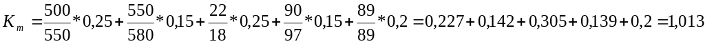 - коефіцієнт конкурентноздатності аготівлі ВАТ «АрселорМіттал Кривий Ріг» щодо Wuhan Iron & Steel дорівнює:
