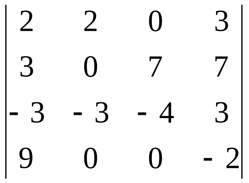 Решение. разложим определитель по третьему столбцу, т.к. в этом столбце есть два нулевых элемента.