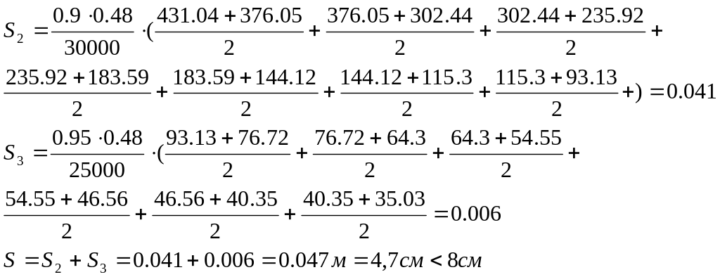 Вывод: Общая просадка всех слоев грунта лежащих ниже подошвы фундамента составляет 3,3см, что лежит в рамках допустимой просадки.