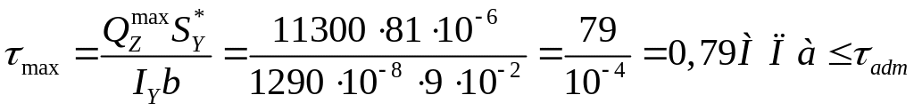 Умова міцності двотаврової балки за дотичними напруженнями виконується!