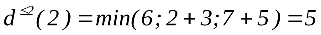 c). Занесем в строку 1, если пути нет, то ставим . Пути состоящие более чем из 2-х дуг следует искать только для вершин, в которые входят дуги, выходящие из вершин 2,4,5: