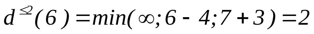 c) Из вершины 4 выходят дуги в вершины 2, 5. Пересчитываем метки этих вершин и заполняем следующую строку: