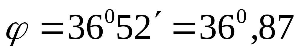 δ – угол, который при α > β равен α - β, а при β > α равен β - α, град;