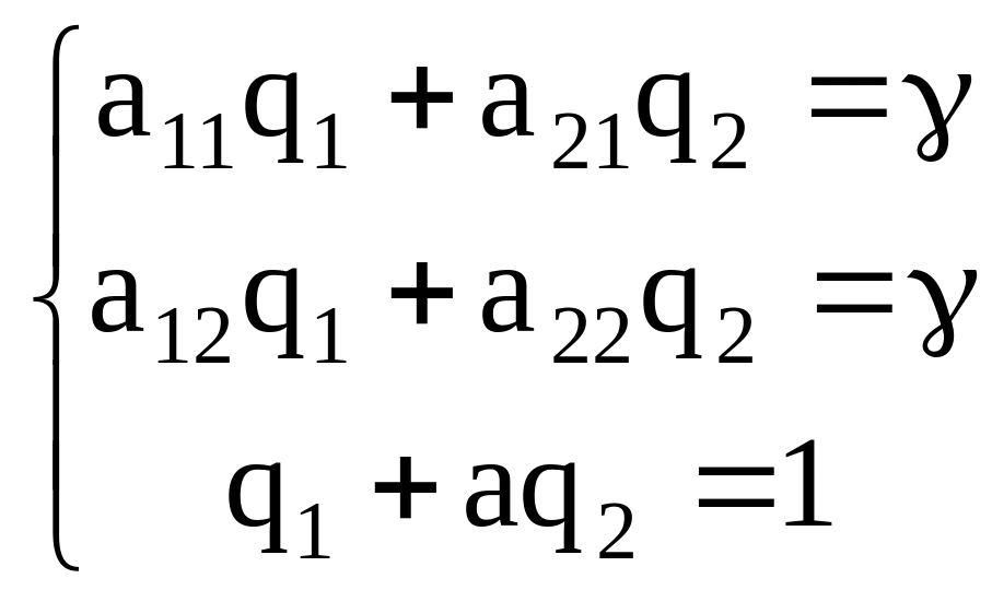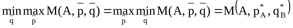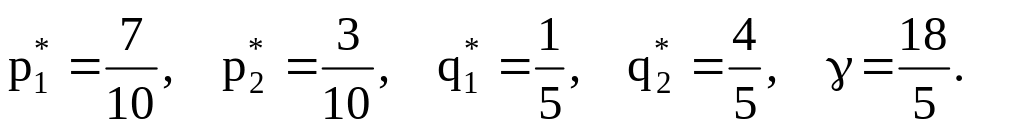 Отсюда следует, что каждая конечная игра имеет цену, которую обозначим через , средний выигрыш, приходящийся на одну партию, удовлетворяющий условию . Каждый игрок при многократном повторении игры, придерживаясь смешанных стратегий, получает более выгодный для себя результат. Оптимальное решение игры в смешанных стратегиях обладает следующим свойством: каждый из игроков не заинтересован в отходе от своей оптимальной смешанной стратегии, если его противник применяет оптимальную смешанную стратегию, так как это ему невыгодно.
