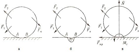 - чистое качение – точка A (рисунок а,б ) не скользит по неподвижной плоскости;