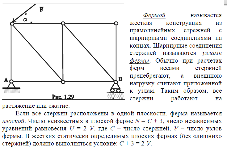 - •24. Понятие о ферме. Статически определимые и статически неопределимые фермы.
