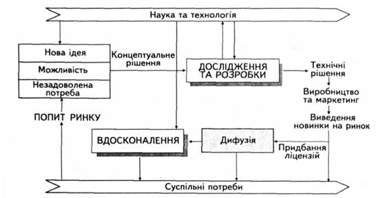 У найзагальнішій формі інноваційний процес визначається як створення, поширення й застосування продукції і технологій, яким притаманна науково-технічна новизна і які задовольняють нові суспільні потреби. Початковою стадією інноваційного процесу є фундаментальні дослідження, спрямовані на вивчення теоретичних засад певних процесів чи явищ. Поштовхом до їх проведення є виникнення певної гіпотези, яка потребує підтвердження. Світовий досвід показує, що фундаментальні дослідження можуть дати позитивний результат лише в 10 % випадків. Дещо більший вихід позитивних результатів буде, якщо дослідження мають цілеспрямований (пошуковий) характер, у ході якого висуваються ідеї щодо матеріалізації наявних теоретичних знань. Вони завершуються обґрунтуванням та експериментальною перевіркою нових методів задоволення суспільних потреб. 1 фундаментальні, і пошукові наукові дослідження здійснюються у спеціалізованих наукових закладах і фінансуються здебільшого за рахунок державних коштів. На жаль, в Україні за останнє десятиліття значно зменшився накопичений
