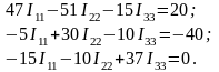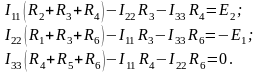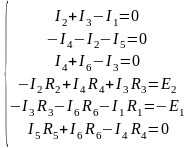 (для узла а); (2) (для узла b); (3) (для узла с); (4) (для контура abca); (5) (для контура acda); (6) (для контура bdcd). (7) |