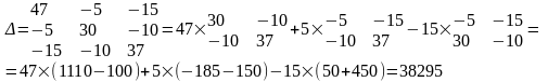 Дальнейший расчет можно вести или методом последовательного исключения неизвестных, или методом определителей. Выбираем последний как более упорядоченный.
