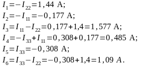 Решая полученную систему уравнений (2)–(7), можем найти токи в ветвях.
