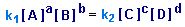 где [A], [B], [C] и [D] - равновесные молярные концентрации веществ A, B, C и D; a,b,c и d - соответствующие стехиометрические коэффициенты (при условии, что реакция идет в одну стадию); k1 и k2 -коэффициенты пропорциональности, называемые константами скоростей.