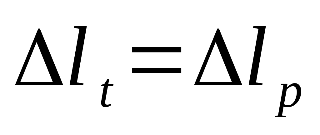 где Δ1Р — изменение длины конструкции под воздействием фиктивной силы pt, вызывающей равнозначные и равновеликие температурные напряжения в конструкции. Согласно закону Гука,