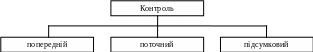 Метою контролю згідно позиції Мескона, Альберта та Хедоурі є сприяння тому, щоб фактичні результати найбільше відповідали очікуваним, а тому види контролю відрізняються за часом його здійснення в процесі управління організацією (рис.7.1.)