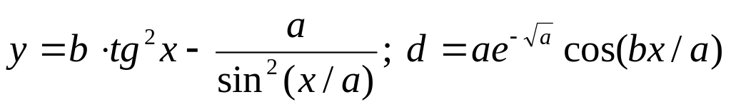 Розробити алгоритм та програму розгалуженої структури для розрахунку значень заданої функції в залежності від значень вхідних даних.