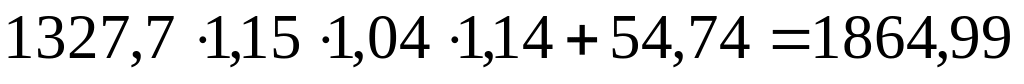 К1 = 1,15; К2 = 1,04; K3= 1,14