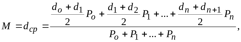 Обозначим через do, d1, …,dn диаметр отверстий сит (мм), а через Po, P1…,Pn – остаток на ситах (%). Тогда выражение для определения М в общем виде будет