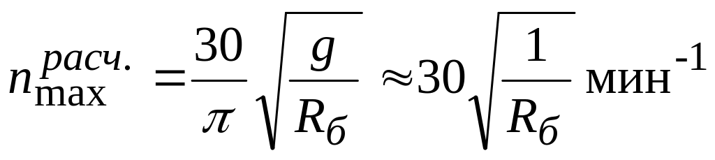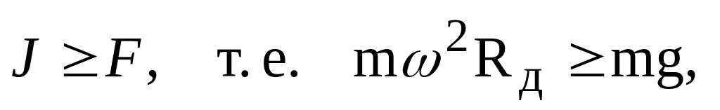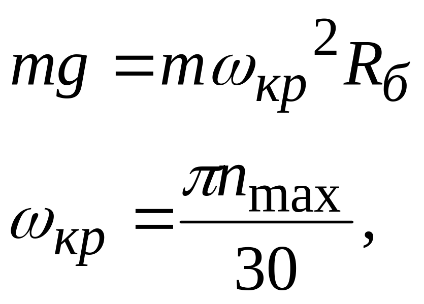 На корнеплод, находящийся в моющем барабане действует сила тяжести «mg» и центробежная сила инерции «mω2Rб».