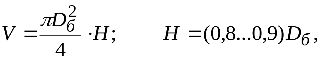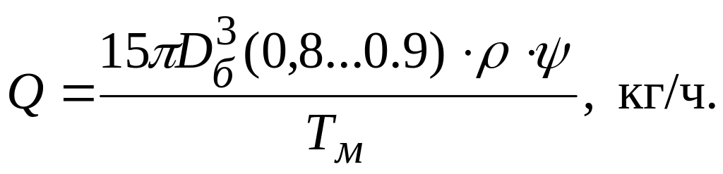 Где V – объем перекидного ковша, выбрасывающего материал из барабана;