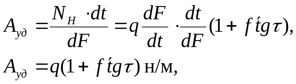 Величина удельной работы резанья, т.е. работы, затрачиваемой на перерезание единицы площади за единицу времени будет равна