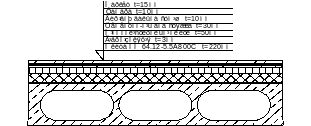 Для адміністративної будівлі проектуємо перекриття, конструкція якого наведена на рис2.1..Товщина овальносклепінчастої залізобетонної плити настилу t=220 мм. Власну вагу настилу приймаємо 0,16 кН/м2 при рекомендованих 0,1…0,2 кН/м2.