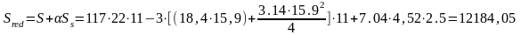 Площа зведеного перерізу і статичний момент відносно нижньої грані:
