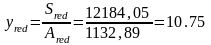 Відстань від нижньої грані до центра ваги зведеного перерізу:
