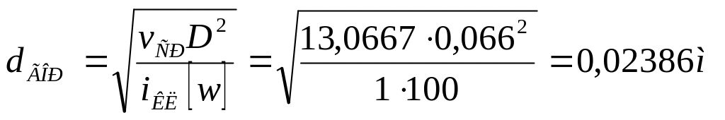 где vСР =13,0667 — средняя скорость поршня, м/с (из теплового расчёта); iКЛ — число одноимённых (выпускных) клапанов на цилиндр (iКЛ=1); [w] — допускаемая скорость газов в проходном сечении клапана, м/с (w=70…100 м/с).