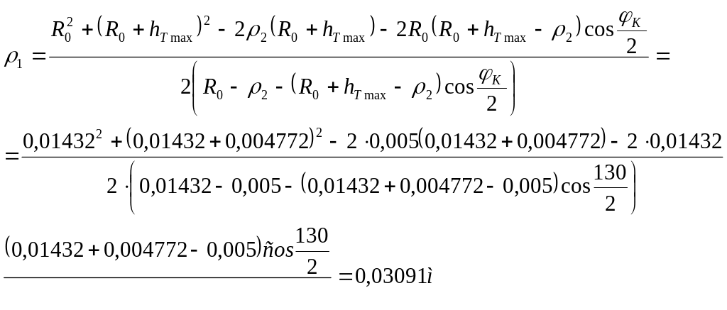 Профиль выпуклого гармонического кулачка образован дугами двух радиусов ρ1 и ρ2 и дугой начальной окружности R0, имеет центральный угол действия φК и обеспечивает максимальный подъём толкателя hТmax. Основным требованием к профилю кулачка является касание дуги профиля радиуса ρ1 дуги ρ2 и начальной окружности. Это условие даёт определённую связь между основными параметрами кулачка: