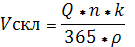 ССШПЦ 300: Vскл = (10,04 * 253 * 7 * 0,8) / ( 365 * 1) = 38,97 м3
