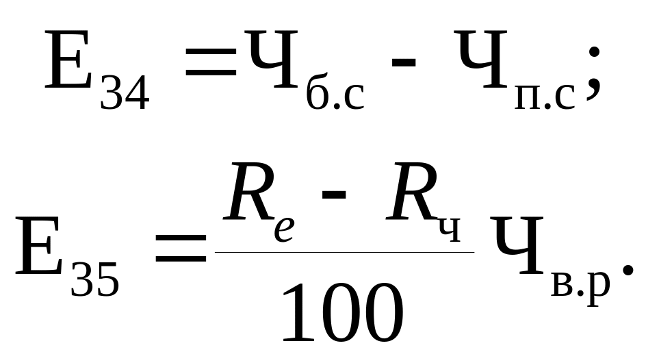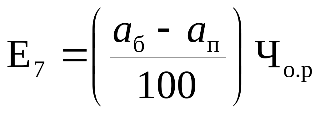 Re – відсоток зростання обсягу валової продукції; Rч – відсоток необхідного збільшення чисельності працівників (без основних робітників), прийнятий для розрахунку у зв’язку зі зростанням обсягу виробництва; Чв.р – чисельність працівників (допоміжних робітників, інженерно-технічних робітників, службовців, МОП, учнів, служби безпеки) в базовому році |