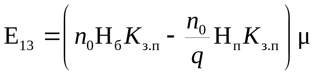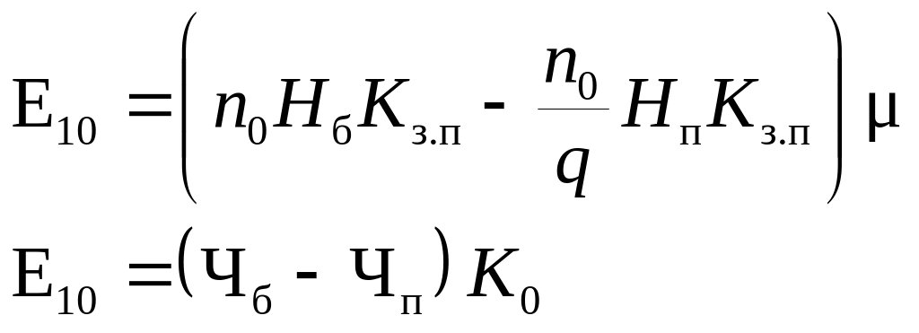 п0 – кількість одиниць устаткування (робочих місць), що намічаються до автоматизації або механізації в плановому році; Нб – норма обслуговування старого обладнання, осіб; Kз.п – коефіцієнт змінності планового року; q – коефіцієнт продуктивності автоматизованого (механізованого) устаткування відносно до неавтоматизованого; Нп – норма обслуговування одиниці автоматизованого (механізованого) устаткування, осіб; µ – коефіцієнт, який враховує час роботи автоматизованого устаткування в плановому році; Чб – чисельність робітників базового року, праця яких підлягає механізації в плановому році; Чп – чисельність робітників на колишній обсяг робіт після механізації важких фізичних робіт; K0 – коефіцієнт збільшення робіт у плановому періоді в порівнянні з базовим |