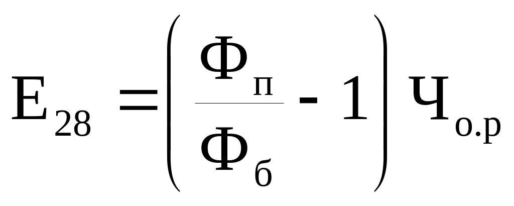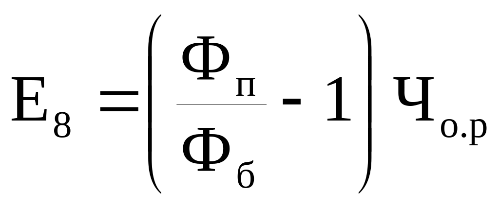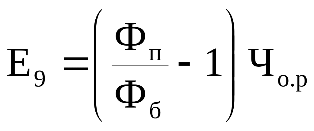 Фп, Фб – дійсний фонд робочого часу одного робітника відповідно в плановому і базисному роках (з урахуванням наднормових годин), год; Чо.р – чисельність основних робітників на планований обсяг робіт при виробітку базового року, осіб |