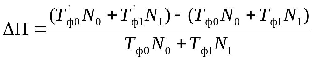 Qп – кількість одиниць продукції, що планується до випуску в плановому періоді за прогресивною технологією; t0, t1 – трудомісткість одиниці продукції відповідно за старою і прогресивною технологією, нормо-год; Фб – фонд робочого часу, відпрацьованого робітником у базовому періоді з урахуванням наднормових годин; Kб – середній коефіцієнт виконання норм у базовому періоді |