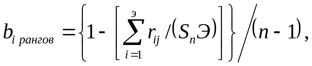 При учете предпочтений по каждому объекту исследования всеми экспертами коэффициенты весомости объектов ранжирования могут рассчитываться по другой формуле: