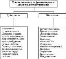 Все условия при этом можно классифицировать по их влиянию на элементы системы (рис. 2.2), выделив субъективные (непосредственно связанные с деятельностью человека и зависящие от него) и объективные (связанные со сложившимися обстоятельствами в деятельности человека и практически не зависящие от него) условия. На элементы системы существенное влияние оказывают также социальные, международные и политические условия, которые в зависимости от уровня рассмотрения можно отнести не только к объективным, но и к субъективным.