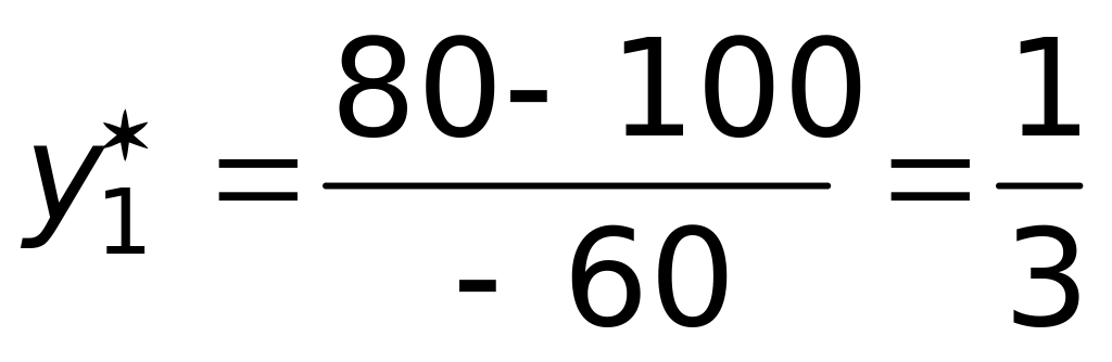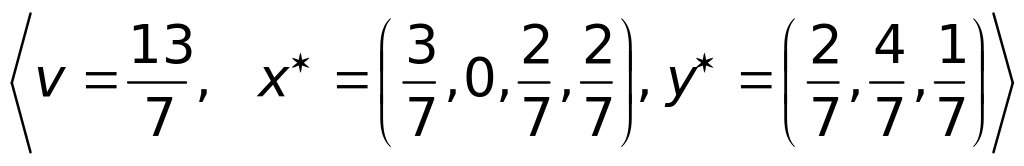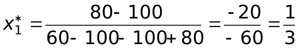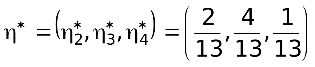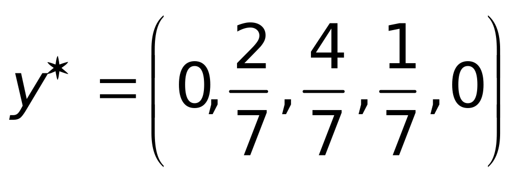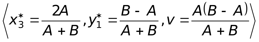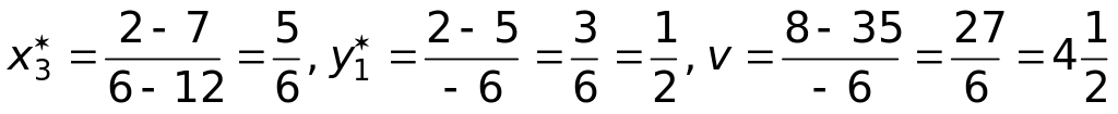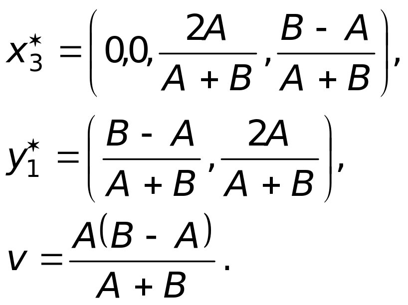 Седловой точки у матрицы нет, поэтому оптимальные стратегии ищем среди смешанных стратегий. Используя формулы (25), (26), получим