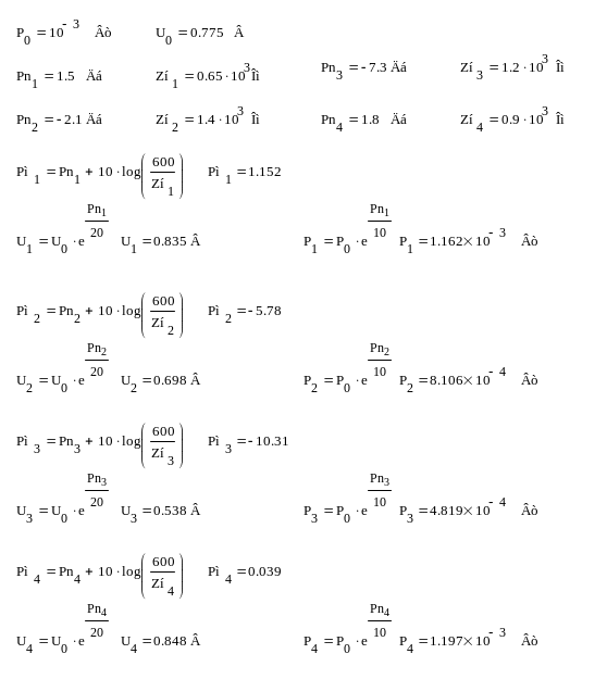Вычисляем абсолютный уровень при заданных значениях U, I и P: