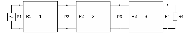 в качестве Zн будет выступать входное сопротивление четырёхполюсника в соответствующей точке (R). Значение мощности и напряжения определяются по формулам: