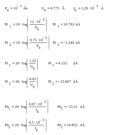 Определить абсолютные уровни мощности, напряжения и тока сигналов при заданных значениях их мощности, напряжения и тока.