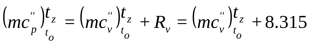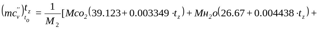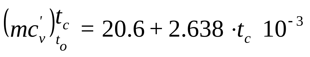 Средняя мольная теплоемкость продуктов сгорания при постоянном объеме: