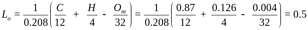 Теоретически необходимое количество воздуха для сгорания 1кг топлива: