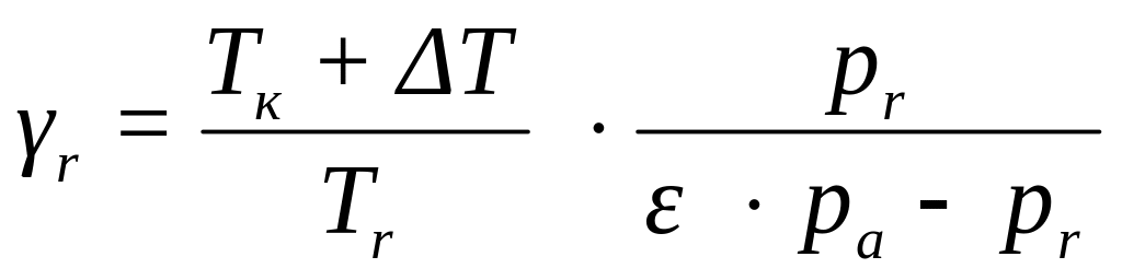 давление остаточных газов pr при газотурбинном наддуве для номинальной частоты вращения pr =(0,90-0,98)pk, МПа. Принимать в зависимости от nном, с уменьшением которого pr снижается.