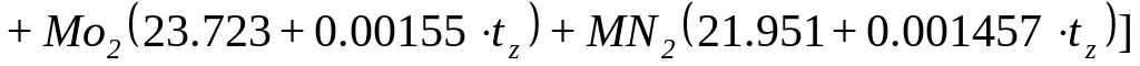 После подстановки найденных значений в уравнение сгорания получим квадратное уравнение с одним неизвестным tz, которое решается известным способом: