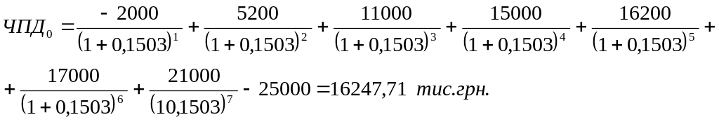 Доцільність прийняття до реалізації інвестиційного проекту оцінимо за показником чистого приведеного доходу.