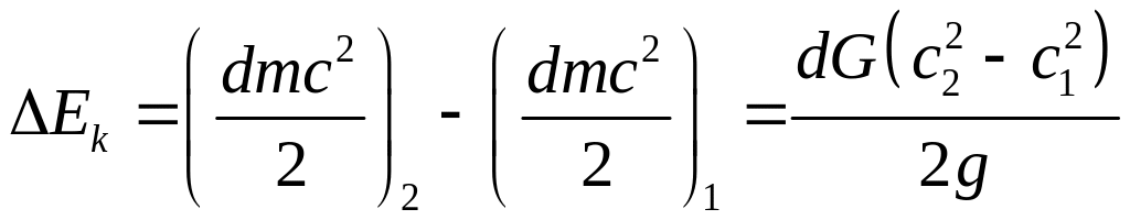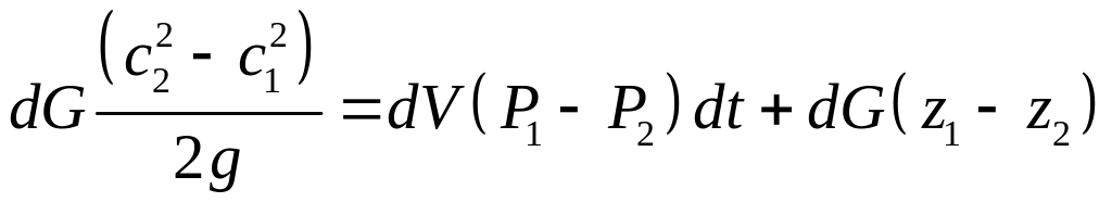 При движении элемента жидкости вдоль оси элементарной струйки масса его остается постоянной, но параметры (давление, скорость) изменяются. В результате изменяются как кинетическая и потенциальная энергия, так и энергия сил давления. Подсчитаем приращение кинетической энергии рассматриваемой массы жидкости за время dt сек. На основании (1)