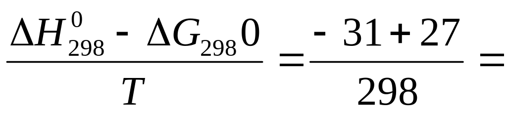 G0400 = - 31000 – 400 (- 13) – Т ( 85,91 . 0,0392 – 156,48 . 0,0130 + - 17,57 . 0,0364) = - 26077,6 Дж/моль
