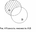 Опр.2.3.3 Разностью множеств А и В называется множество С, состоящее из всех элементов множества А, не принадлежащих множеству В: С={х хА и хВ}. Обозначается, А\В.